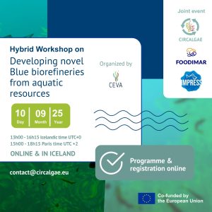The EU-funded project IMPRESS successfully co-hosted a hybrid workshop on “Developing Novel Blue Biorefineries from Aquatic Resources”, bringing together 97 researchers, innovators, and industry stakeholders to explore practical pathways for valorising aquatic biomass and side streams. The event was co-hosted with CIRCALGAE and FOODIMAR and organised by CEVA (Centre d’Etude et de Valorisation des Algues), with on-site sessions at the Park Inn by Radisson Reykjavik Keflavík Airport and a concurrent online stream.